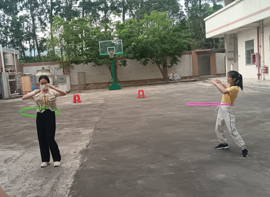 大家踴躍報名參與,由于是背對背夾著呼啦圈,兩個人的動作總有不協(xié)調(diào)的時候,好幾次“險象環(huán)生”,呼啦圈差點落地,鬧出了不少笑話。