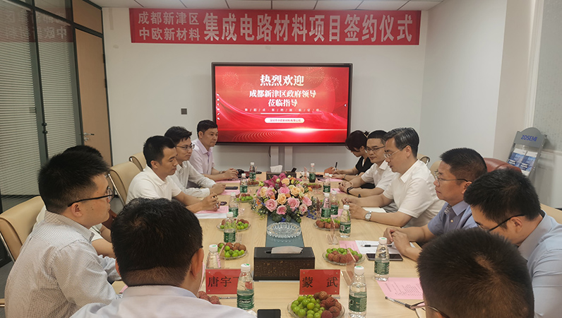 2023年6月13日,新津區(qū)政府與天賦智能制造產(chǎn)業(yè)園領(lǐng)導(dǎo)們與深圳市中歐新材料有限公司關(guān)于集成電路應(yīng)用材料研發(fā)生產(chǎn)基地投資項目的簽約儀式在中歐新材工廠會議室舉行,并取得了圓滿成功。新津區(qū)委副書記、區(qū)政府區(qū)長胡建平,新津區(qū)政府辦公室主任楊敏,新津區(qū)經(jīng)信局、新科局局長何仲恒,天府智能制造產(chǎn)業(yè)園黨工委委員韓霄,深圳市中歐新材料有限公司總經(jīng)理劉誠,副總經(jīng)理陳殷等出席了本次儀式。